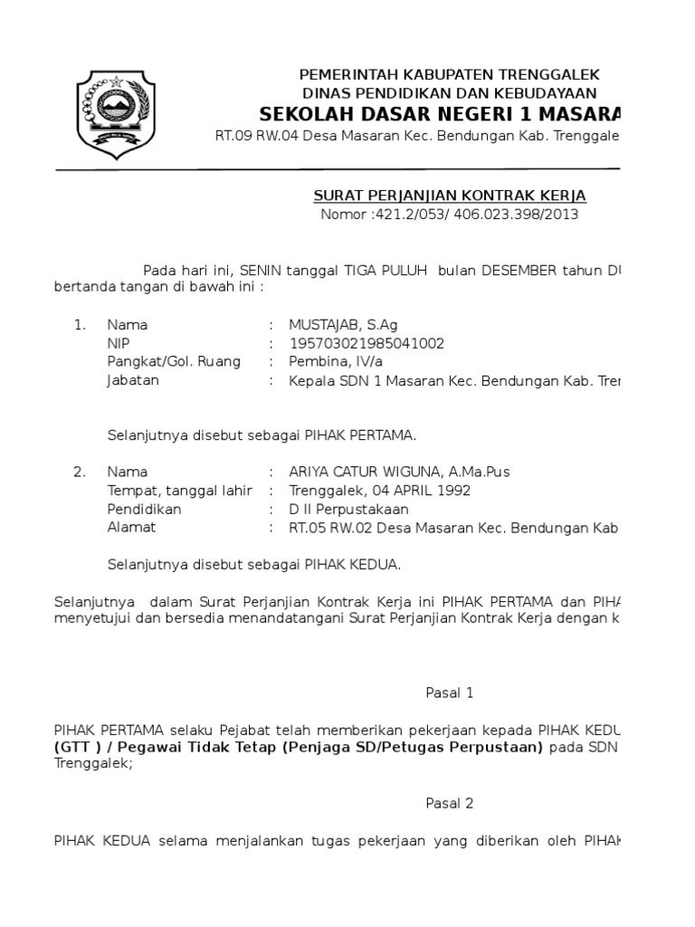 Daftar guru berstatus kontrak kerja individu (kki) pada sekolah negeri di dki jakarta. format doc / docx microsoft word . Download format file doc docx microsoft word. Bapak, biasanya emang surat kontrak kerja dikeluarkan oleh pihak tempat saya akan dikontrak kerja. Penjelasan mengenai variabel pada dataset ini: Demikian surat perjanjian kerja ini di buat dengan matera dan di tanda tangani oleh kedua belah pihak tanpa adanya paksaan dan dalam kondisi sehat. Berikut ini adalah berkas contoh surat perjanjian kontrak kerja guru paud format microsoft word. Mengingat banyaknya manfaat surat kontrak kerja maka dari itu kepala sekolah perlu memilikinya ketika akan mempekerjakan guru honorer berdasarkan hal tersebut dalam pos ini kami membagikan contoh surat kontrak kerja guru honorer bagi kepala sekolah yang memimpin sd berstatus negeri. Contoh surat perjanjian kontrak kerja guru paud. Sebanyak 510 guru kontrak daerah, dari tingkat paud hingga sma mengikuti perpanjangan kontrak kerja di dinas pendidikan kabupaten kayong utara, 7 hingga 8. Guru pada sekolah swasta adalah guru yang diangkat dan ditempatkan pada satuan pendidikan yang diselenggarakan masyarakat. Npsn tempat tugas = nomor npsn sekolah tempat mengajar 5. Yang akan kita angkat menjadi topik pembahasan kita kali ini adalah mengenai contoh kontrak kerja yang baik dan benar.